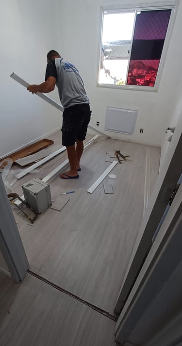 Instalamos porcelanato, vinílico, laminado e outros pisos com precisão e cuidado.